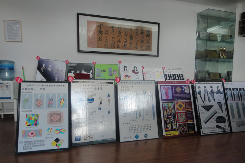 本次“加紫杯”2011首届围巾造型艺术设计竞赛共有11个班级参赛,提交作品61件。比赛首先选出了31件决赛作品,进入个人作品展示环节。