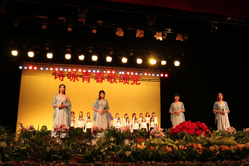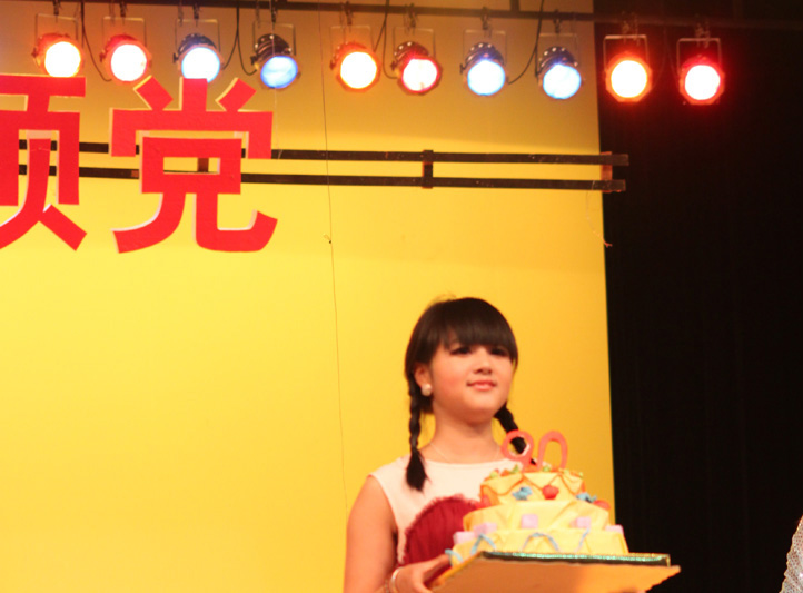 新葡官网的朗诵节目《点燃90支蜡烛——祝党生日快乐》集合了20多位青春靓丽的大学生亮相舞台。节目开始描述一群豪情迈丈、英勇牺牲的革命烈士,随后以4人领颂和20余人群颂的形式向观众们展示,而且不光仅仅是朗诵更融入了美院的特色——书法,作为党90周年的生日礼物。节目最后还穿插有献上生日蛋糕的环节,在《生日快乐》歌声中落下帷幕,博得现场的阵阵掌声。