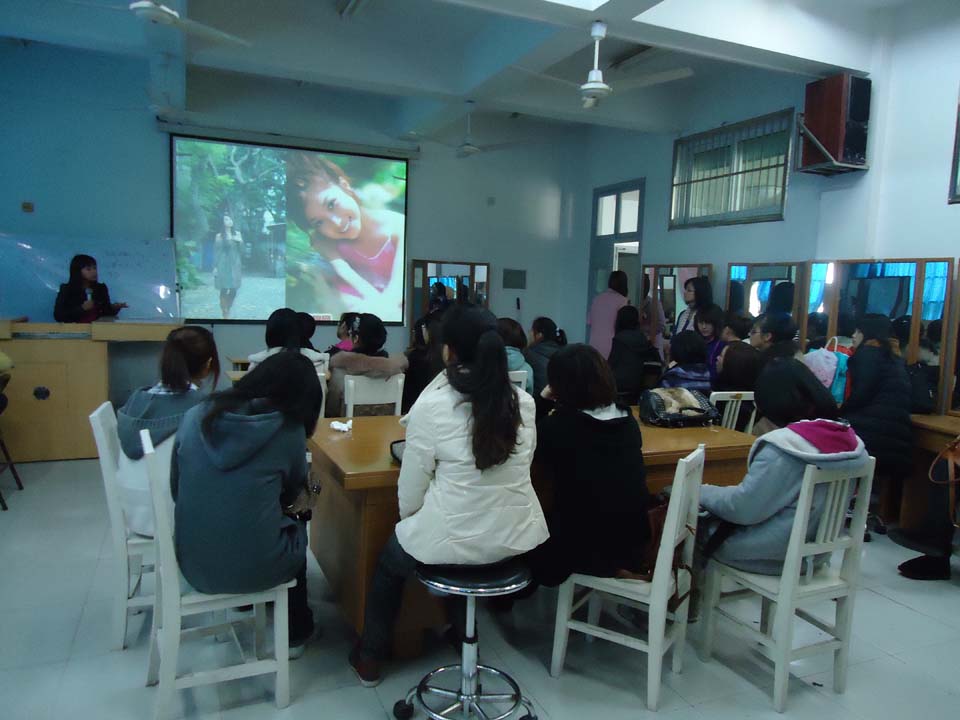 2011年3月27日下午2点整,在3003新葡官方网站南校区2A103开展了本学期美院化妆培训班的第一堂课程。主讲师是著名化妆师朱来顺老师,整间教室座无虚席,前来听课的学生满怀期待。