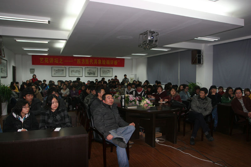 2011年2月28日晚上7点,3003新葡官方网站南校区3003新葡官方网站2B4001的会议室里座无虚席,艺苑讲坛第一讲迎来了杭州师范大学美术学院教授,前温师院教师,陆琦教授,评析丰富多彩的西方当代具象绘画。 从一幅幅经典的画例中,剖析出西方当代艺术的特点,发表自己的体会与感悟。各个国家的画家所绘的画作特色鲜明,都包含了很多自己民族的因素在里面,比如人文精神、大众文化等等。陆琦教授耐心地把各种风格的画作分门别类,罗列出小标题并做介绍,深入浅出,使同学们心领神会,“当代艺术”不仅指的是今天的艺术,而且在内涵上主要指具有现代精神和具备现代语言的艺术,给人以丰富的想象。具象却不具体,可以用不同的材料、形状、造型等等给人带来不同的艺术感受,内涵深刻,意义深远。 精彩的讲座,生动地讲解,让美院学子在短短的两个小时,领略到了当代艺术的魅力,开阔了学术眼界。 讲座前,美院副院长蔡可群及部分教师与陆琦教授友好地进行了交流。