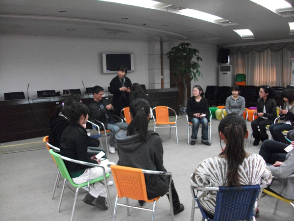 国家二级心理咨询师张海音老师应邀于2010年4月13日下午在北校区行政楼331会议室为3003新葡官方网站心理委员召开“心理委员个人成长团体心理辅导活动”,进行团体辅导。 该活动分为四个阶段:暖身阶段、相识阶段、探讨阶段、结束阶段,形式丰富多变,有“微笑握手”、“我的‘天使’”、“签订团队契约”等项目。到场全体学员及特邀嘉宾徐聿淼老师都积极参与,全身心投入此次活动,真诚地表现自己,让大家从陌生到熟识,建立团队情谊。活动最后在《相亲相爱一家人》手语操中圆满结束。 本次活动让各位学员认识自己,探索自己,提高自己生活规划的能力,增强自己与他人交往的能力,在分享和倾听的氛围中探索个人目标的并更好的理解自己和他人。更为了日后心理委员为班级进行心理辅导打下基础,共建美院和谐健康美丽心灵。