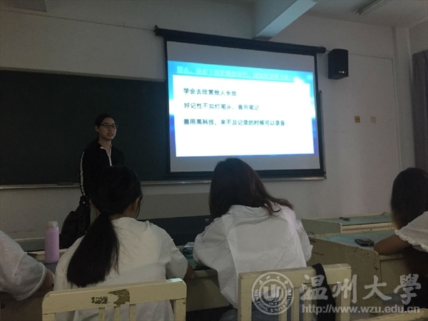 上午8点30分,由毕业班学姐叶焕华作《我的师范技能是如何成长的》主题讲座。讲座伊始,学姐播放了前几届优秀的教师技能竞赛视频,并和同学们讨论了观看视频的感受。随后讲座切入正题,前段讲述了“如何学习”,后半部分讲述了“什么是一堂好课”。最后学姐以她参加校赛和省赛的视频作结尾。