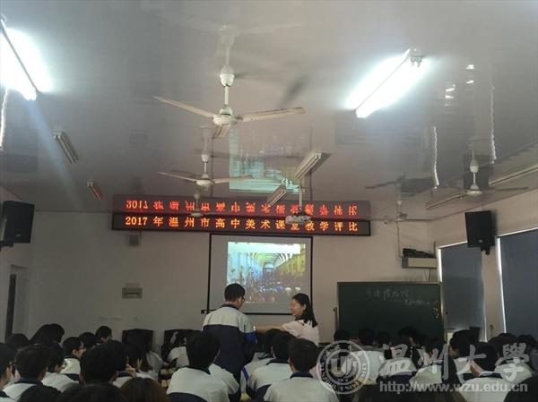2017年5月11日,3003新葡官方网站美术学师范班在班主任胡建南老师的带领下,来到温州市永嘉县楠江中学,旁听2017年温州市高中美术课堂教学评比活动。