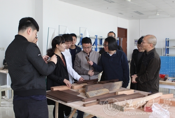 近日,新葡官网副院长王薇、实验教学中心主任顾任飞等一行8人专程来到瓯江学院艺术设计学院实验室考察与交流。在瓯江学院副院长郭均纺和艺术设计学院院长刘明刚、副院长叶洲荣的陪同下,深入走访了摄影棚、漆艺室、丝网印刷室、艺术设计展厅及工艺美术陈列室等十余个实验室。