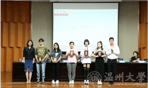 学院党总支副书记杨振海还在会上宣读了2015-2016学年校、院优秀班级与先进个人获得者名单。优秀班级代表与学子在欢快的音乐和响亮的掌声中上台领奖并合影留恋。校“优良学风班”--14视觉传达班代表谢威同学上台发言,分享了团日活动、学科获奖、和谐寝室等班级建设经验。