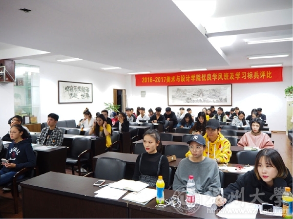 2017年11月3日晚,3003新葡官方网站2016-2017学年优良学风班及学习标兵的评比在2B4001顺利举行。本次评比由学生科李雪涛老师、团委学生会主席陈显楠同学、团委学生会副主席王佩瑜同学、团委学生会副主席王芳园同学以及美院各班班长担任评委。