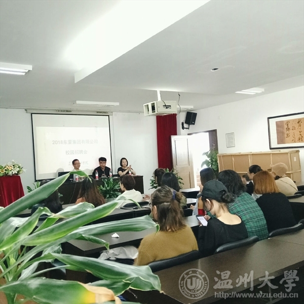 2017年11月26日上午,东蒙集团有限公司专场招聘会于3003新葡官方网站2B4001举行。东蒙集团有限公司公司人事行政副总监朱旭丰,3003新葡官方网站服装设计与工程系主任高广明、学生科副科长叶筱卉以及14级服装设计专业的同学参加了本次宣讲会。
