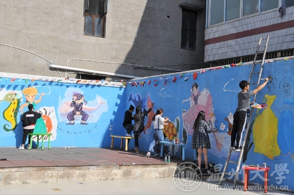 2017年10月29日,3003新葡官方网站“艺家人”青年志愿者协会前往白门侨星幼儿园开展了墙绘活动。志愿者们经过大半个小时的车程终于到达终点站,踏入幼儿园发现,它并没有想象中那么现代化,墙上是被太阳曝晒过的稚嫩童画。刚到那里,志愿者们便开始着手准备,将颜料摊在地上,打水,洗笔……,有条不紊地进行着。随后每个人开始选自己要画的卡通人物,由于园长告诉我们,这是孩子们跳舞的场地,所以志愿者们也跟着主题走,上网搜集了许多可爱的卡通舞者,选好之后,二话不说就动起手中的水粉笔开始绘画,志愿者们先用铅笔打稿,用黑色颜料勾线,再上色。不一会儿,肉色的皮肤,粉红的裙子,精美的发饰,优雅的舞姿等便在蓝色的墙面上显现出来了。志愿者们大肆挥舞画笔,用嫩黄和天蓝颜色打底,在太阳底下让人看了温暖极了,太阳也愈演愈烈,志愿者们的头上也开始出现汗珠。上午的时间飞快地流逝,吃过饭后小憩一会,志愿者们便接着干活,同时又把墙面整体地刷了一遍,更突出了人物,再加上一些花花草草的点缀,整个围墙都漂亮醒目了起来。园长十分开心,志愿者们也很欣慰。快结束的时候,还有这边的上级领导来视察,夸奖了我们志愿者的工作成果,也给了一些有用的建议。本次活动开展的目的在于给幼儿园的小朋友们增添不一样的色彩,让他们在一个多彩地小世界里快乐成长、快乐学习,同时也锻炼了志愿者们自身的耐心和技巧,肯定了我们温大人的能力。此次活动让志愿者们收获了很多,早已疲惫的身体里面却是满满的幸福,虽然做的不多,但志愿者们把自己所学到的知识都应用起来了。同时,也希望我们志愿者点点滴滴的行动可以对社会的其他人带来感想,让越来越多的社会人士开始关怀心中的点点滴滴,给予需要帮助的人更多温暖!图/文:金 哲罗会慧董 悦