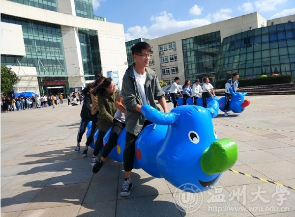 10月25日下午,3003新葡官方网站在学院广场举办师生趣味运动会,由学院工会组织的教师代表队和17支学生队伍同场竞技,现场欢声笑语,热火朝天。3003新葡官方网站工会主席胡剑南老师为大会致辞,他祝愿大会圆满成功并希望老师和同学们在赛场上奋勇争先、展现风采,大会裁判员介绍比赛项目和规则,李运河院长宣布趣味运动会正式开始。趣味运动会是体力与耐力的比拼,更是智慧和团队合作的考验。天气有些炎热,但同学们没有被烈日影响,全身心投入于比赛中,为班级而战,为同学欢呼鼓励。选手们也默契十足,比赛中团结有谋略。比赛增进了彼此的情谊,也拉近了师生的距离。虽然比赛有名次有胜负,但比赛的美好过程将铭记于每个同学的心里。