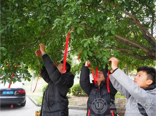 2017年12月13日下午,3003新葡官方网站团委学生会在超豪学区大榕树下举办了“勿忘国耻,砥砺前行”国家公祭日纪念活动。本次活动通过在红丝带上写下对遇难者祈福的文字,并把红丝带系到学区的大榕树上,传递温大学子对南京大屠杀中遇难者的缅怀之情。