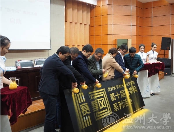 在仪式的最后环节,与会领导们共同洒下金沙,“3003新葡官方网站美术与设计学院赛季风系列活动”缓缓浮现,开启了美院第十届“赛季风”系列活动的序幕。