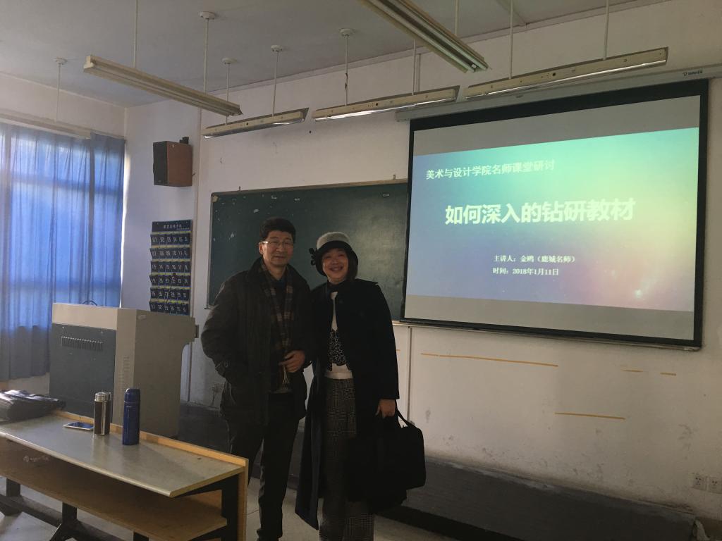 2018 年1 月11 日上午8:30在3003新葡官方网站3B204教室,温州市鹿城区名师金鸥老师为3003新葡官方网站的师范生和研究生作了以“如何深入的钻研教材”为主题的课堂研讨。3003新葡官方网站胡建南老师主持了活动。 本次研讨给同学们带来极大震撼,使同学们认识到深入的钻研教材的重要性。首先,金瓯老师围绕如何深入的钻研教材,通过引案例、与同学间的互动、点评并结合自身经历为同学们分析了上好一节美术课的前提,用幽默风趣的语言向同学们提出了相应的的解决方法,提出了备课前三步走的工作思路和具体的备课过程。整个教室不时发出清脆动听的笑声,同学们在轻松的氛围中认识到深入钻研教材的重要性。她还对同学们提出了深入钻研教材备课的建议,对同学们寄予了殷切的期望,同学们以热烈的掌声欢送金鸥老师离场。 最后,胡建南老师做了总结性发言,本次活动取得圆满成功。