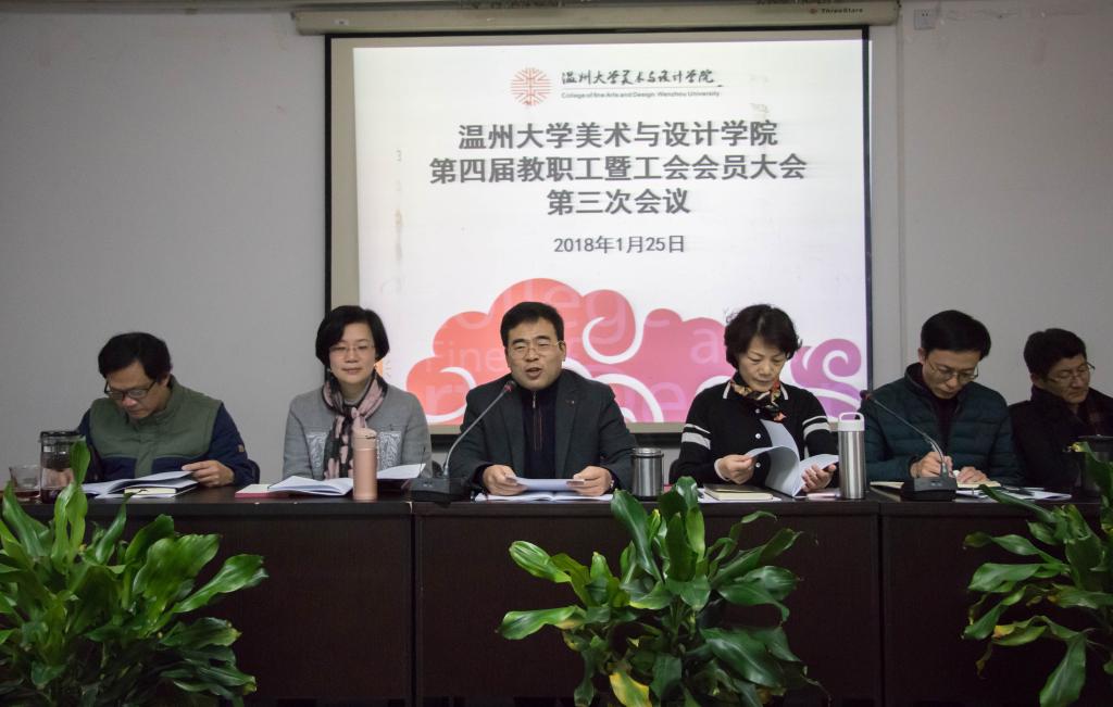 2018年1月25日下午,新葡官网在2B4001召开第四届教职工暨工会会员大会第三次会议。学院全体教职工参加了大会,会议由学院党总支副书记杨振海主持。