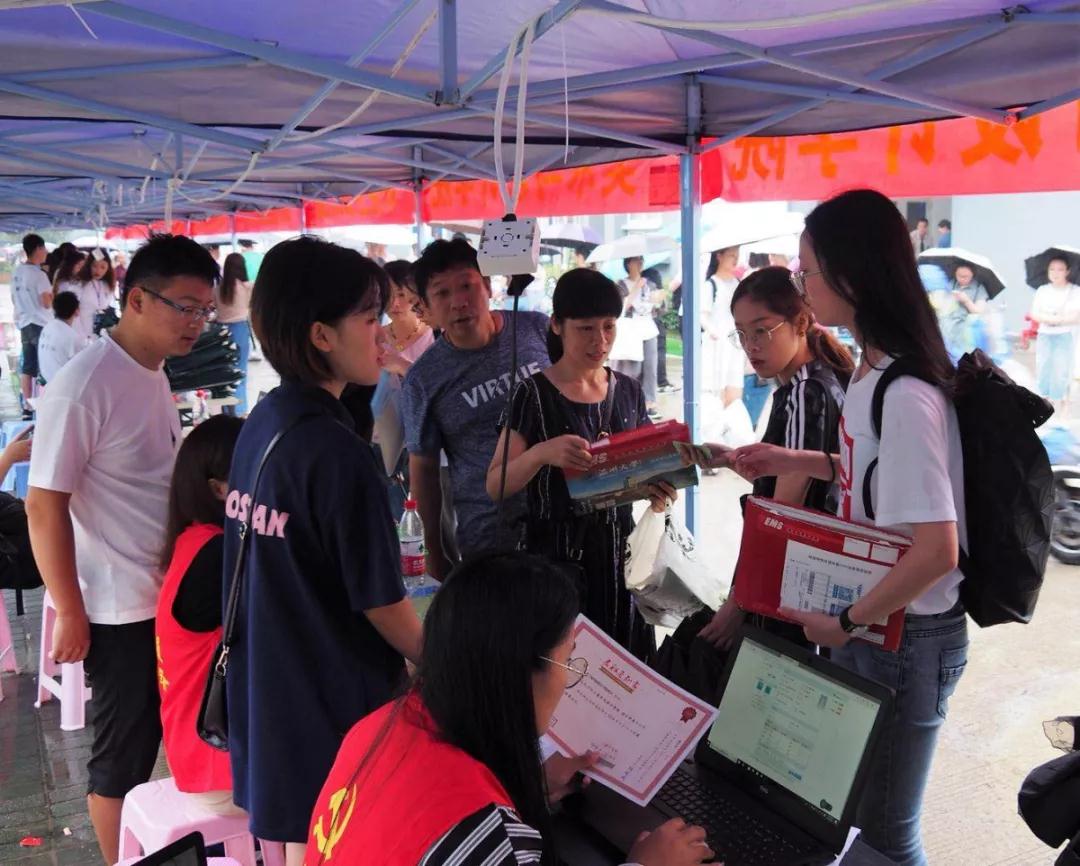 虽然天空中飘着雨,但依旧没有阻挡新生们和志愿者们的热情。每当有新生们到来时,迎新队员们都会想起当年自己的身影,一副充满着对未来、对知识渴求的脸庞。新生们拉着行李箱穿梭在这个对于他们来说还陌生的地方,迎新的志愿者们热情的为新生们指路、打伞、搬行李,忙的不亦乐乎,脸上始终带着笑容,希望可以用自己的笑容感染着心生胆怯的他们,为他们刚踏入大学的第一天留下一丝的温暖。一个笑容,会让岁月永远铭记。